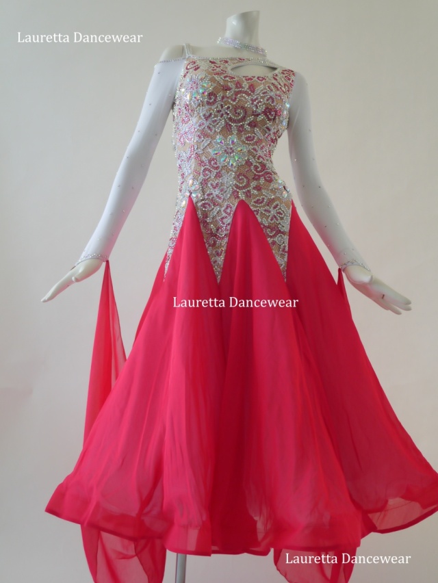 今回のパーティードレスは、両脇を高く摘んだらセクシーなラテンドレスにもなりステキです。