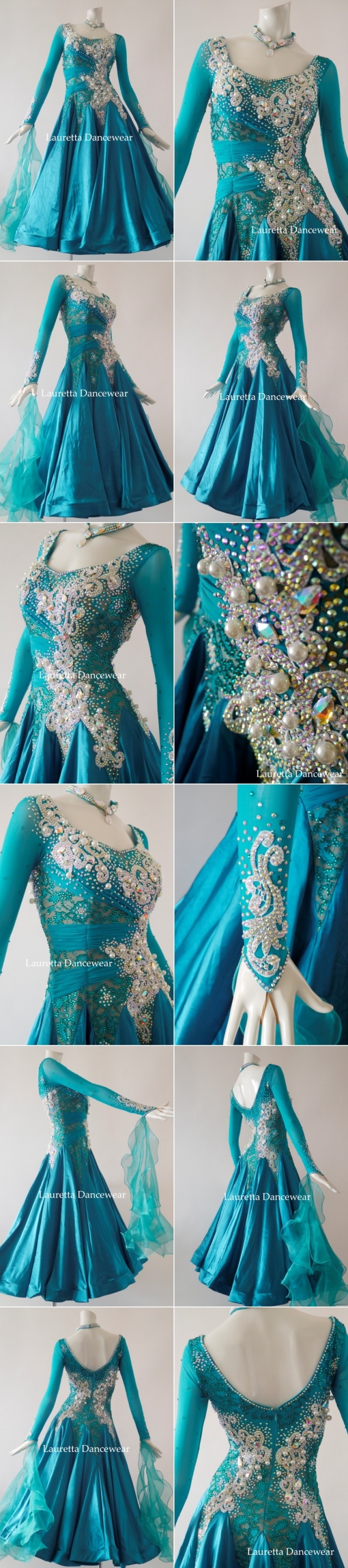 深みのあるグリーンカラーのドレスに 流れるようにパールビーズとラインストーンを施しました。気品があり凛とした印象のドレスです。