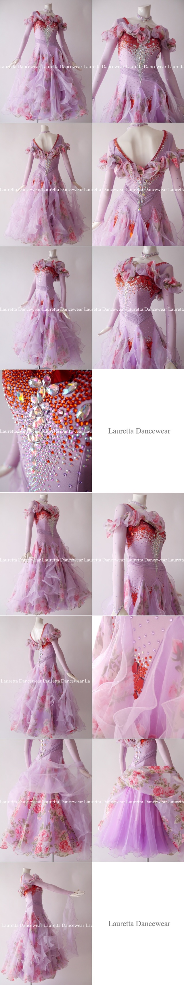 どの角度から見ても華やかで、存在感のあるドレスです。ワルツの流れるような動きにぴったり。